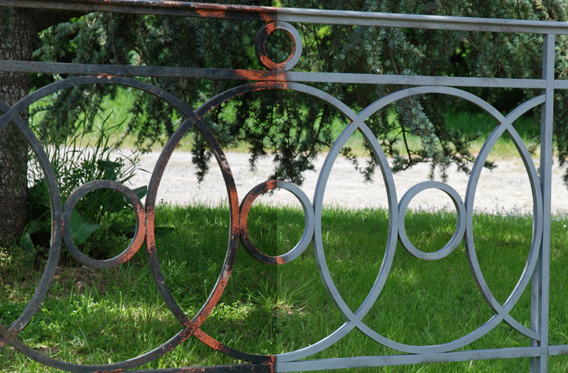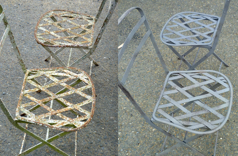 - mobiliers métalliques peints ou rouillés (portails et grilles en fer forgé, meubles industriels, salons de jardin, volets…)